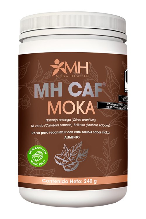 Café soluble, inulina de agave, naranjo amargo (Citrus aurantium), té verde (Camelia sinensis) y hongo shiitake (Lentinula edodes)